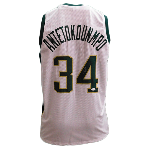 Giannis Antetokounmpo Autographed Pro Basketball White Jersey "The Greek Freak"(JSA)