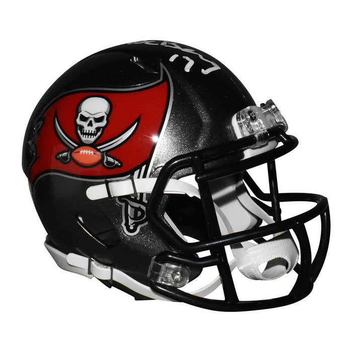 Steve Deberg Signed Tampa Bay Buccaneers Speed Mini Replica Silver Football Helmet (JSA)