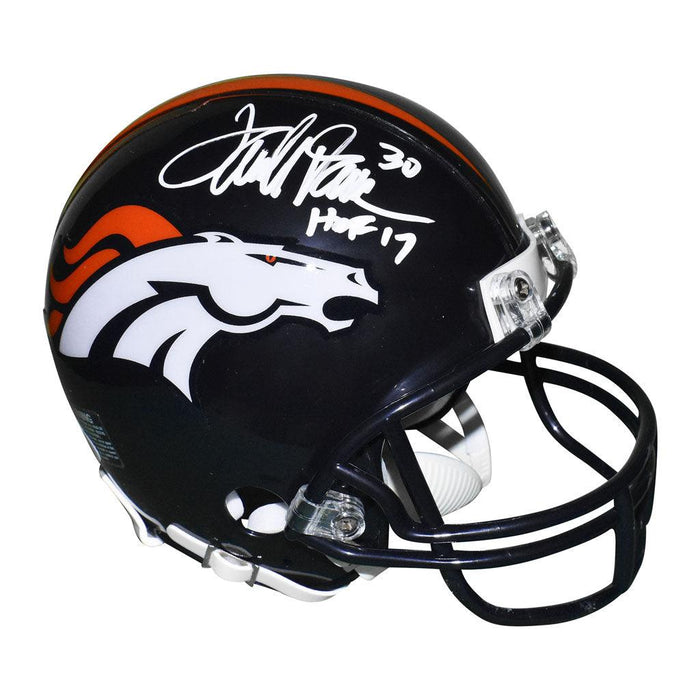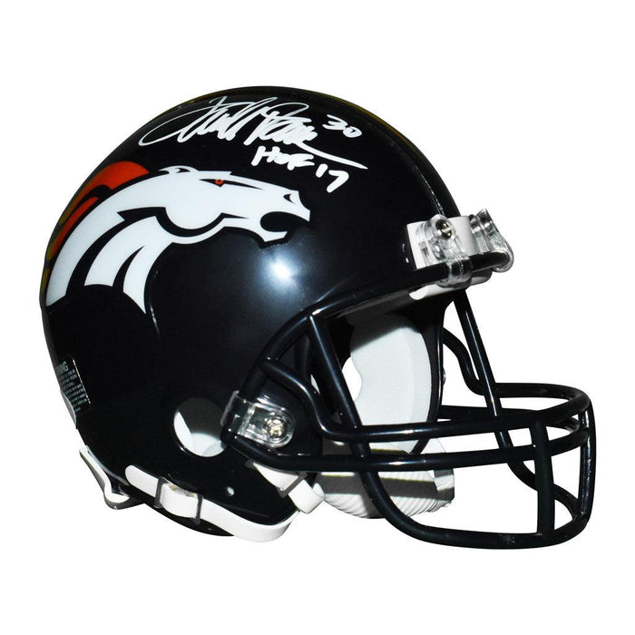 - A mini replica Riddell NFL football helmet autographed by Terrell Davis with HOF 17 inscription and authenticated by JSA