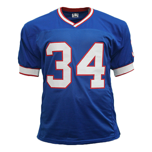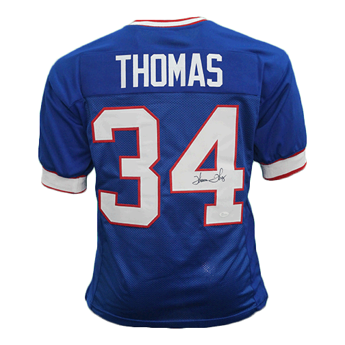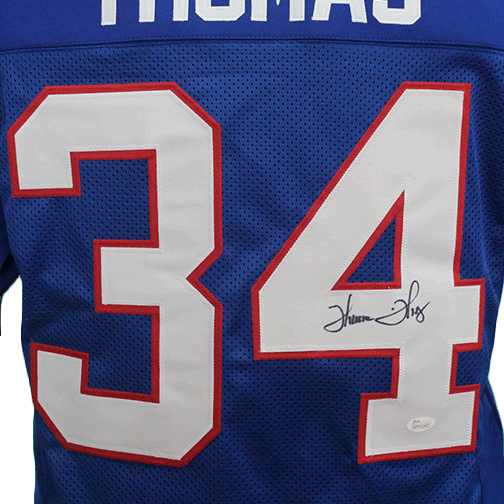 Thurman Thomas Autographed Pro Style Football Blue Jersey (Beckett)