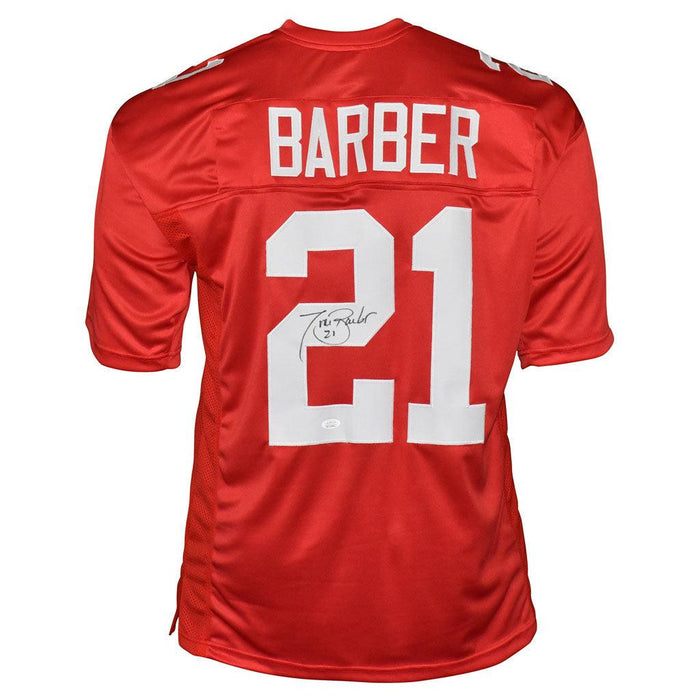 - A professional style alternate red custom replica football jersey autographed by Tiki Barber and authenticated by JSA