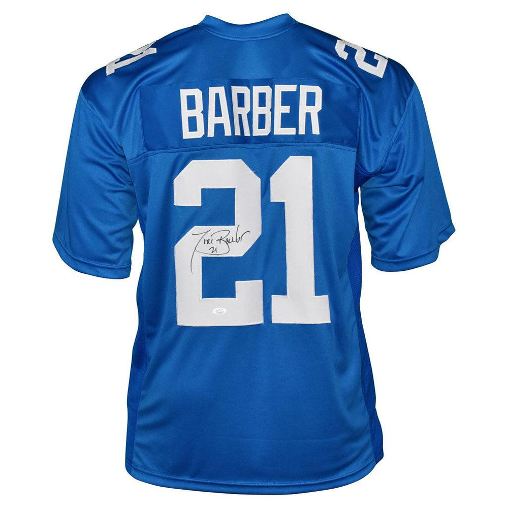 - A professional style blue custom replica football jersey autographed by Tiki Barber and authenticated by JSA