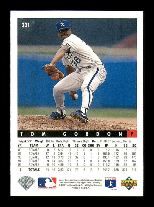 Tom Gordon Autographed 1993 Upper Deck Card #221 Kansas City Royals SKU #184270