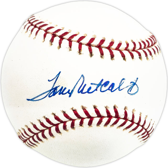 This is an Official MLB Baseball that has been hand signed by Tom Metcalf. This item has been certified authentic by Beckett Authentication (BAS) and comes with their tamper-proof QR Code hologram that can be verified on the Beckett-authentication.com.