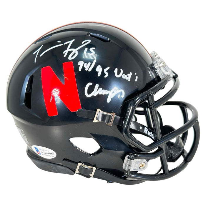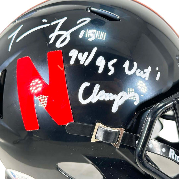 Tommie Frazier Signed 94/95 National Champs Inscribed Nebraska Cornhuskers Speed Mini Football Helmet (Beckett)