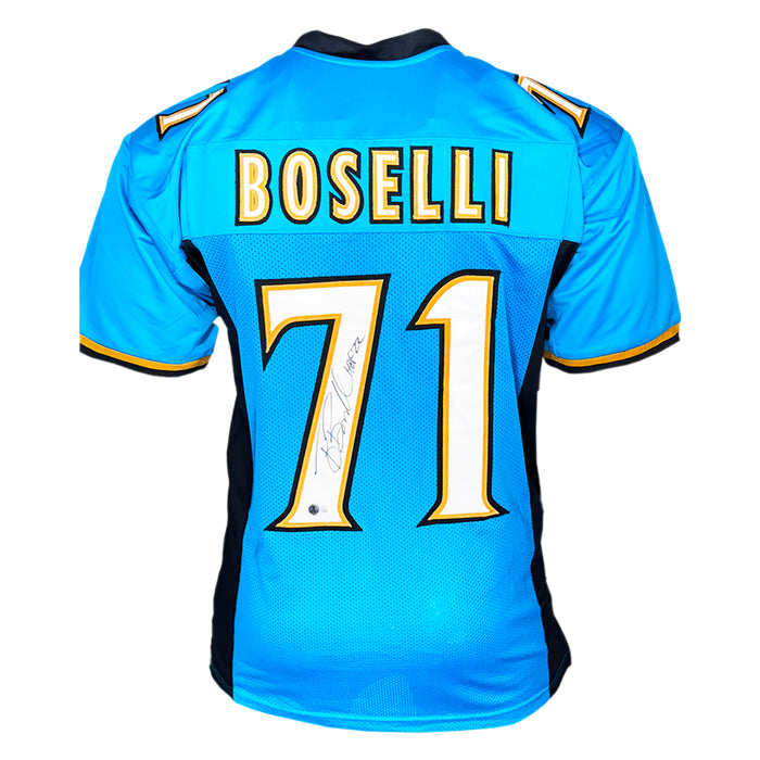 - A professional style teal custom replica football jersey autographed by Tony Boselli with HOF 22 inscription and authenticated by JSA