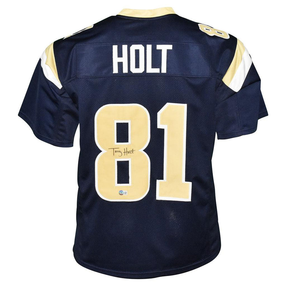 - A professional style blue custom replica football jersey autographed by Torry Holt and authenticated by Beckett