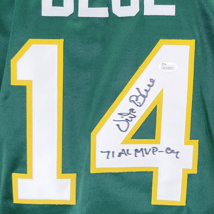 Vida Blue Signed 71 AL MVP CY Inscription Oakland Green Baseball Jersey (JSA)