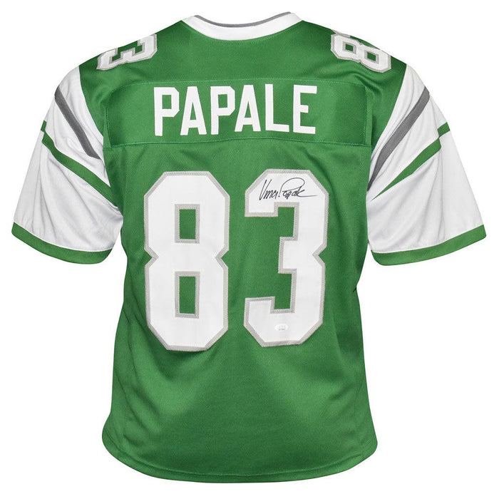 - A professional style green custom replica football jersey autographed by Vince Papale and authenticated by JSA