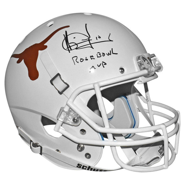Vince Young Signed Rose Bowl MVP Inscription Texas Longhorns Full-Size Schutt Replica White Football Helmet (JSA)