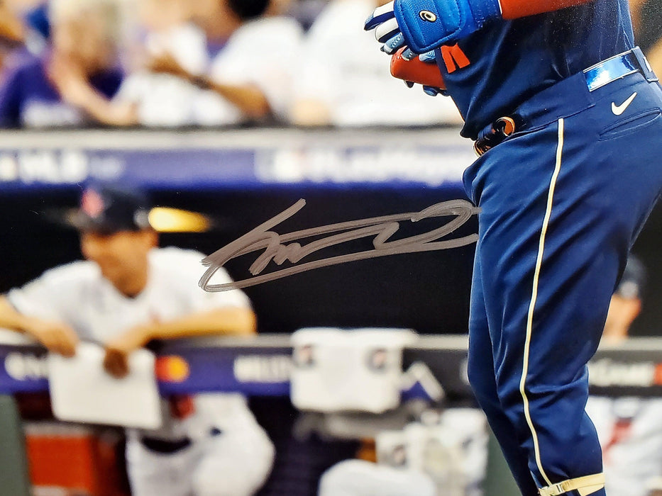 This is a 16x20 Photo that has been hand signed by Vladimir Guerrero Jr. This item has been certified authentic by Beckett Authentication (BAS) and comes with their tamper-proof sticker and matching certificate of authenticity.