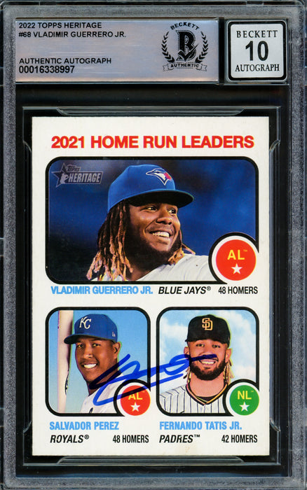 Vladimir Guerrero Jr. Autographed 2022 Topps Heritage Card #68 Toronto Blue Jays Auto Grade Gem Mint 10 Beckett BAS #16338997