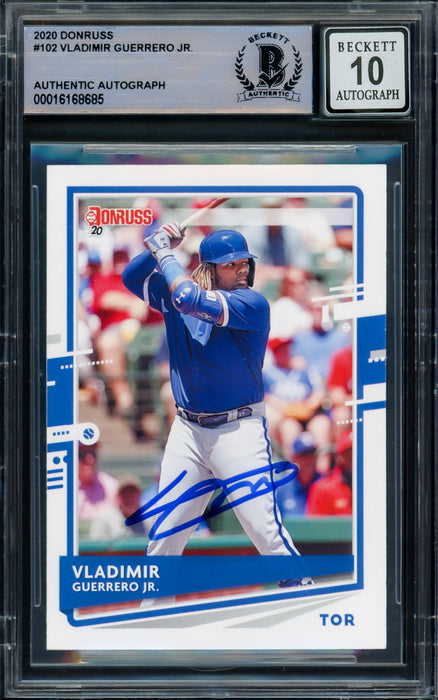 Vladmir Guerrero Jr. Autographed 2020 Donruss Variations Card #102 Toronto Blue Jays Auto Grade Gem Mint 10 Fielding Beckett BAS #16168685