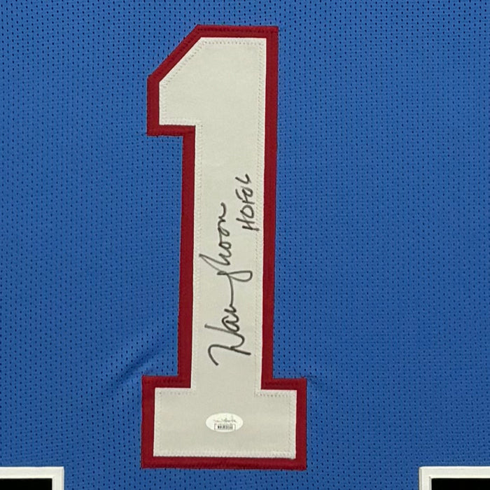 Warren Moon Signed Blue Custom Suede Matte Framed Football Jersey