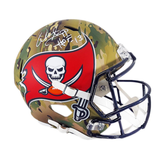 Warren Sapp Signed HOF 13 Inscription Tampa Bay Buccaneers Camo Speed Full-Size Football Helmet (Beckett)
