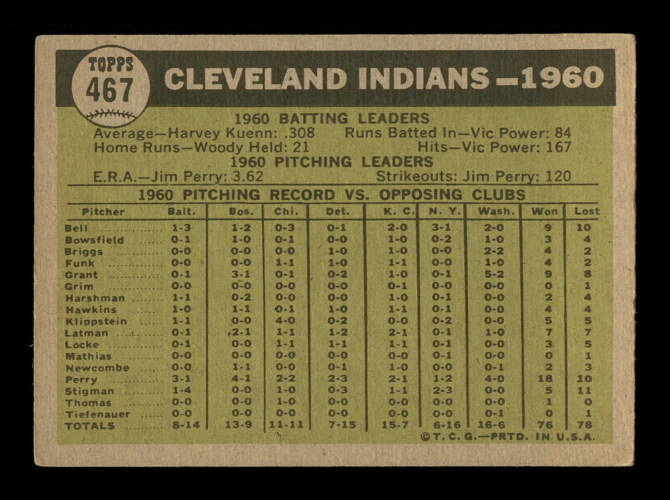 Wynn Hawkins Autographed 1961 Topps Team Card #467 Cleveland Indians SKU #169854