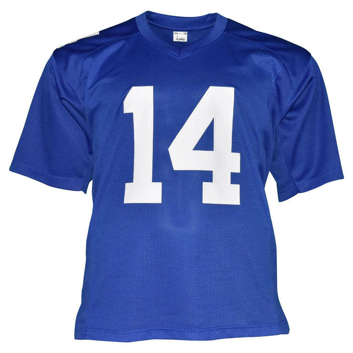 - A professional style blue custom replica football jersey autographed by YA Tittle with HOF 71 inscription and authenticated by JSA