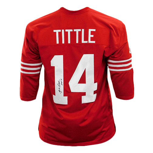 - Hand signed Football jersey autographed by YA Tittle with HOF 71 inscription and authenticated by JSA