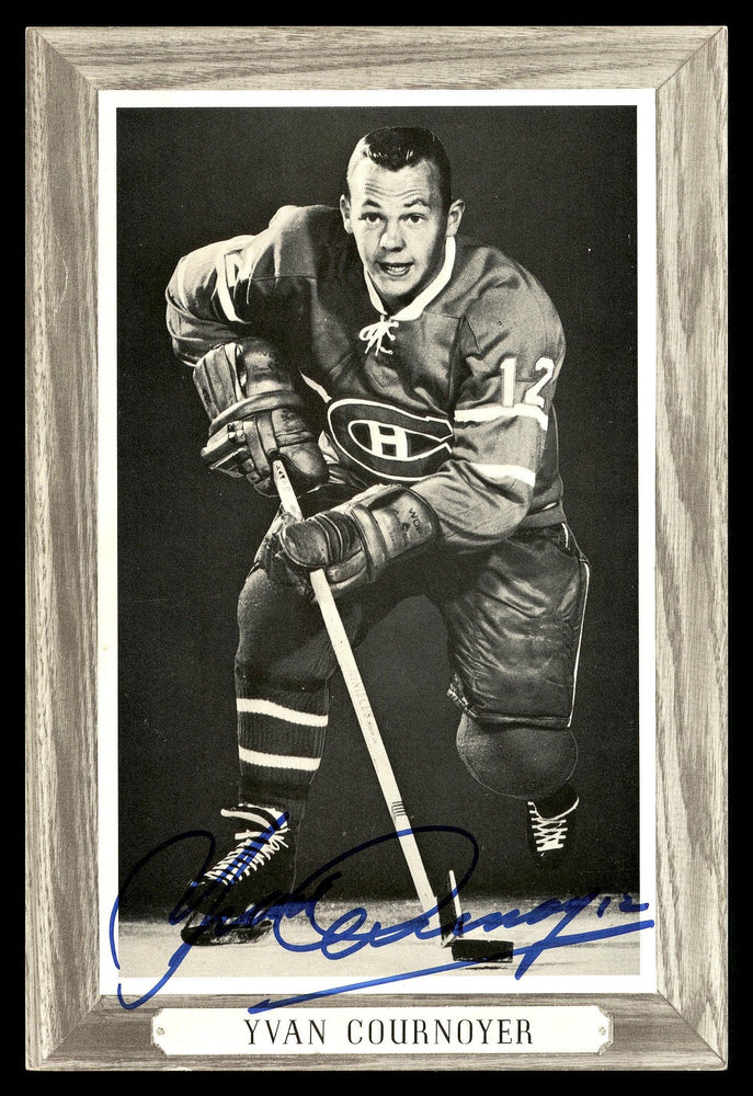 This is a 1964-67 Beehive Group 3 4.5x6.5 Photo that has been hand signed by Yvan Cournoyer. This item is guaranteed to pass any third party authentication company including Beckett, PSA/DNA and JSA authentication.