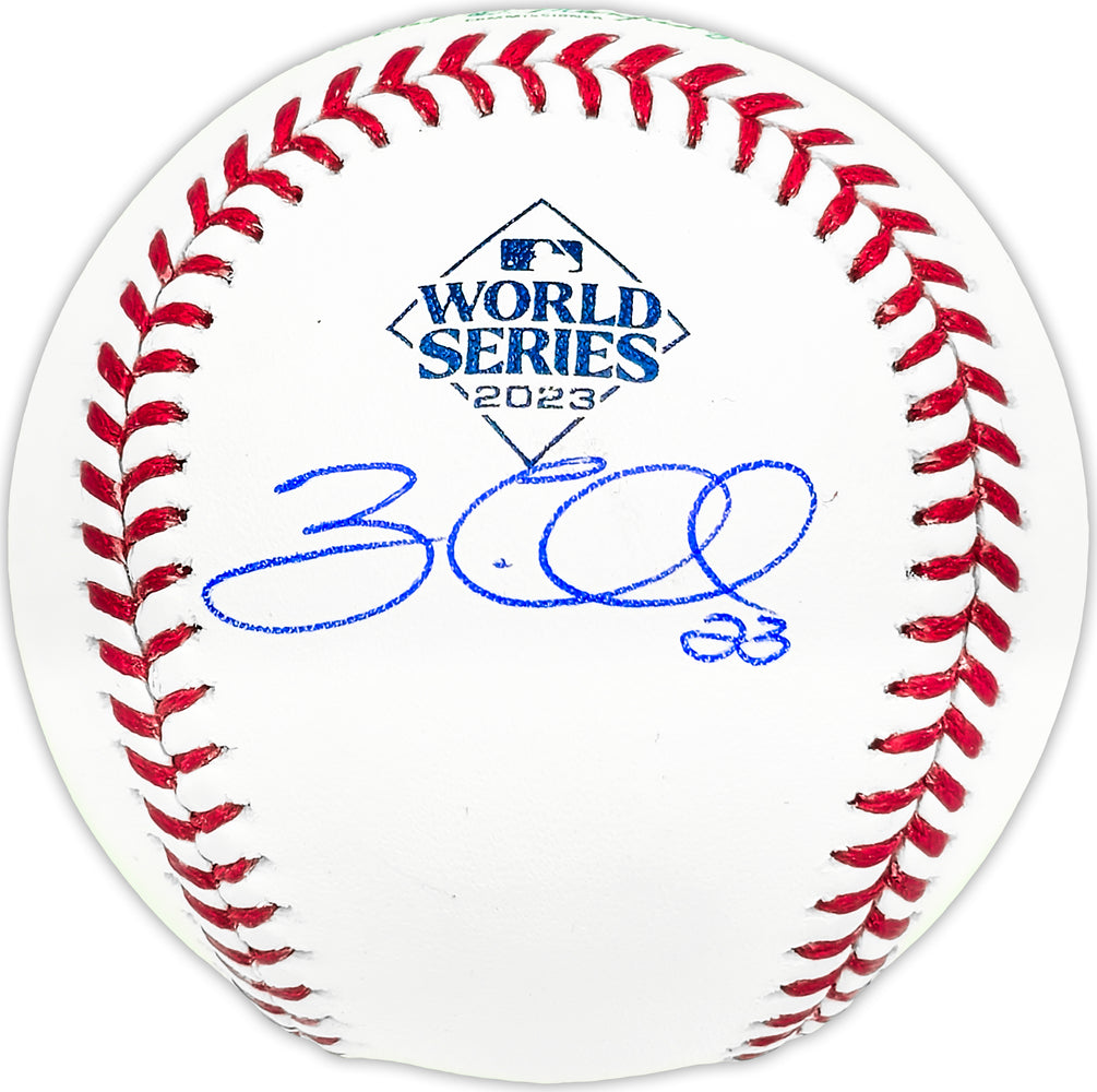 This is an Official 2023 World Series Logo MLB Baseball that has been hand signed by Zac Gallen. This item has been witnessed and certified authentic by Beckett Authentication (BAS) and comes with their tamper-proof witness sticker.